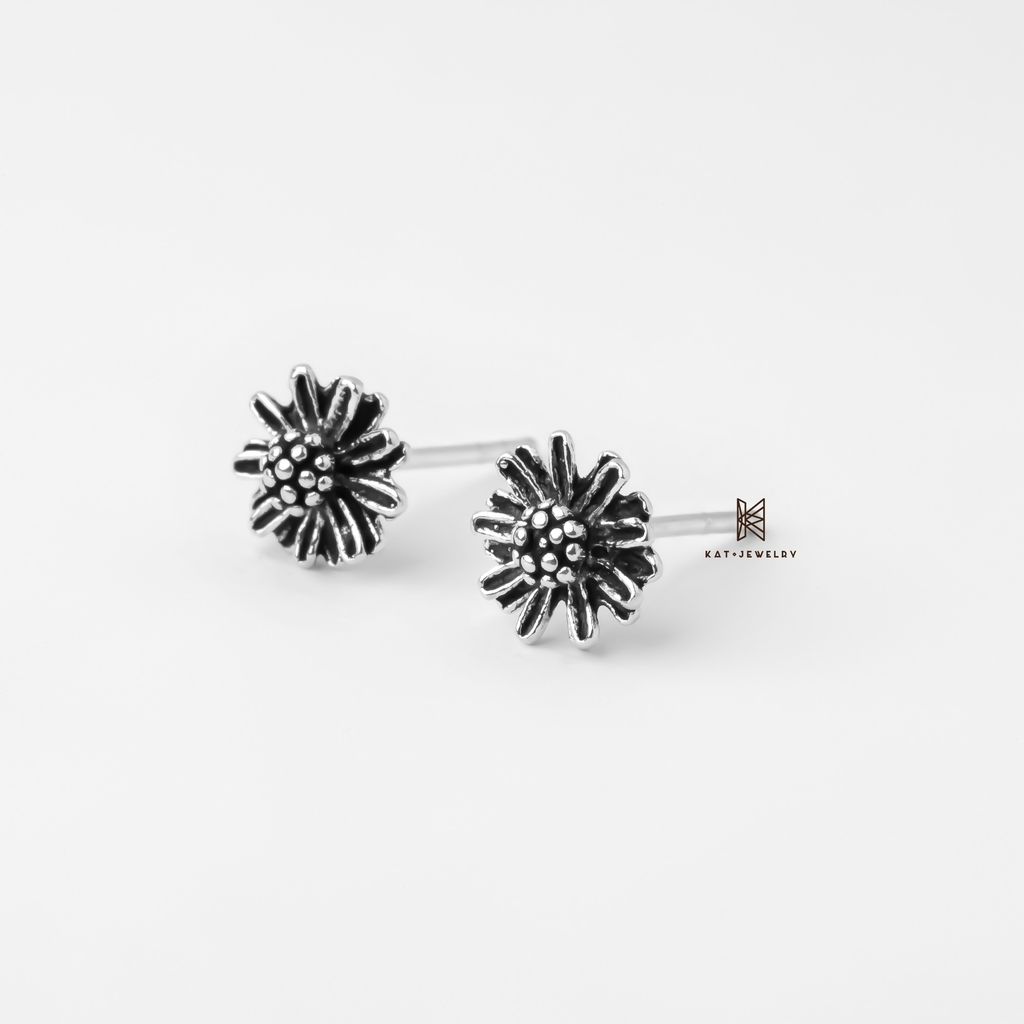 E STUD 3D DAISY OXIDIZE