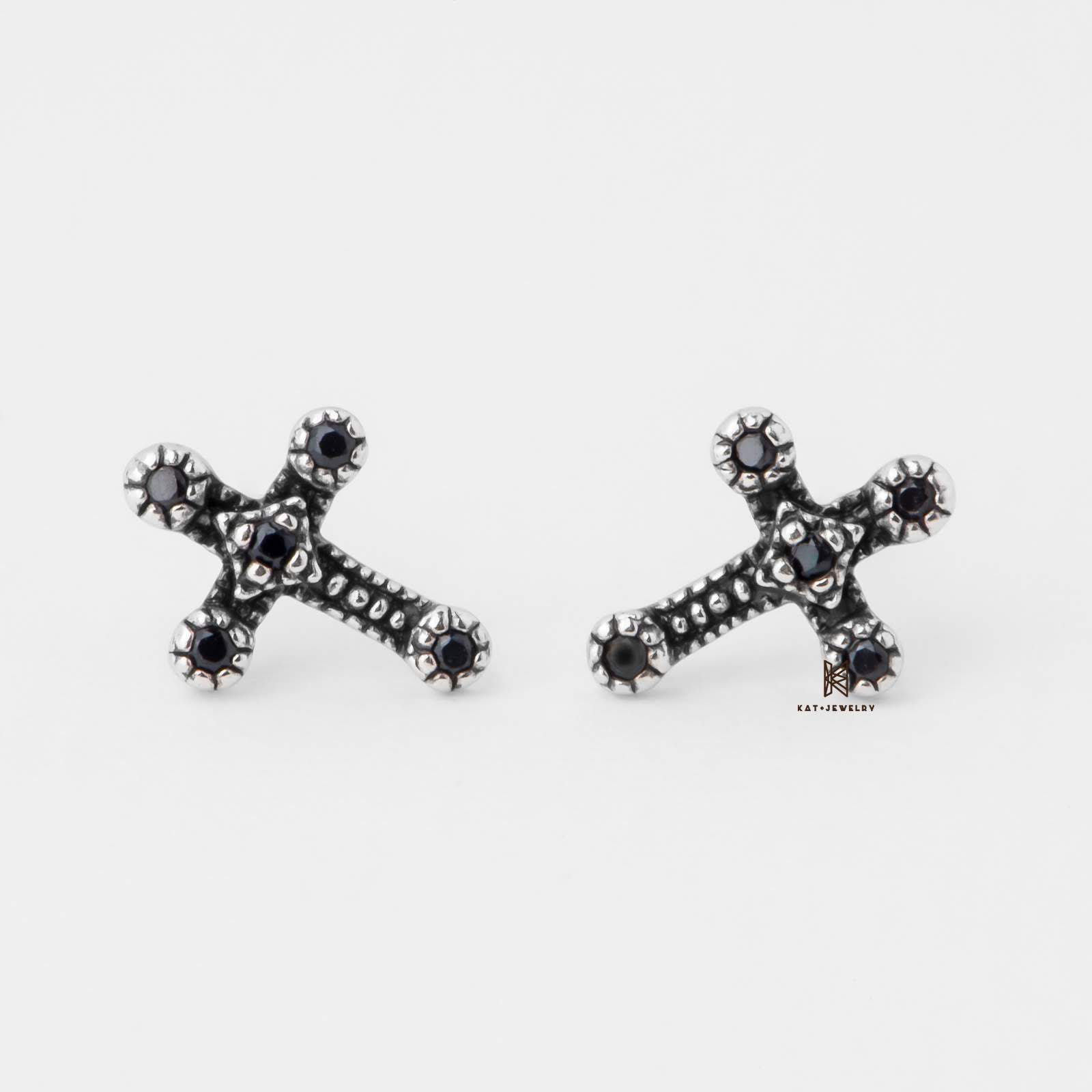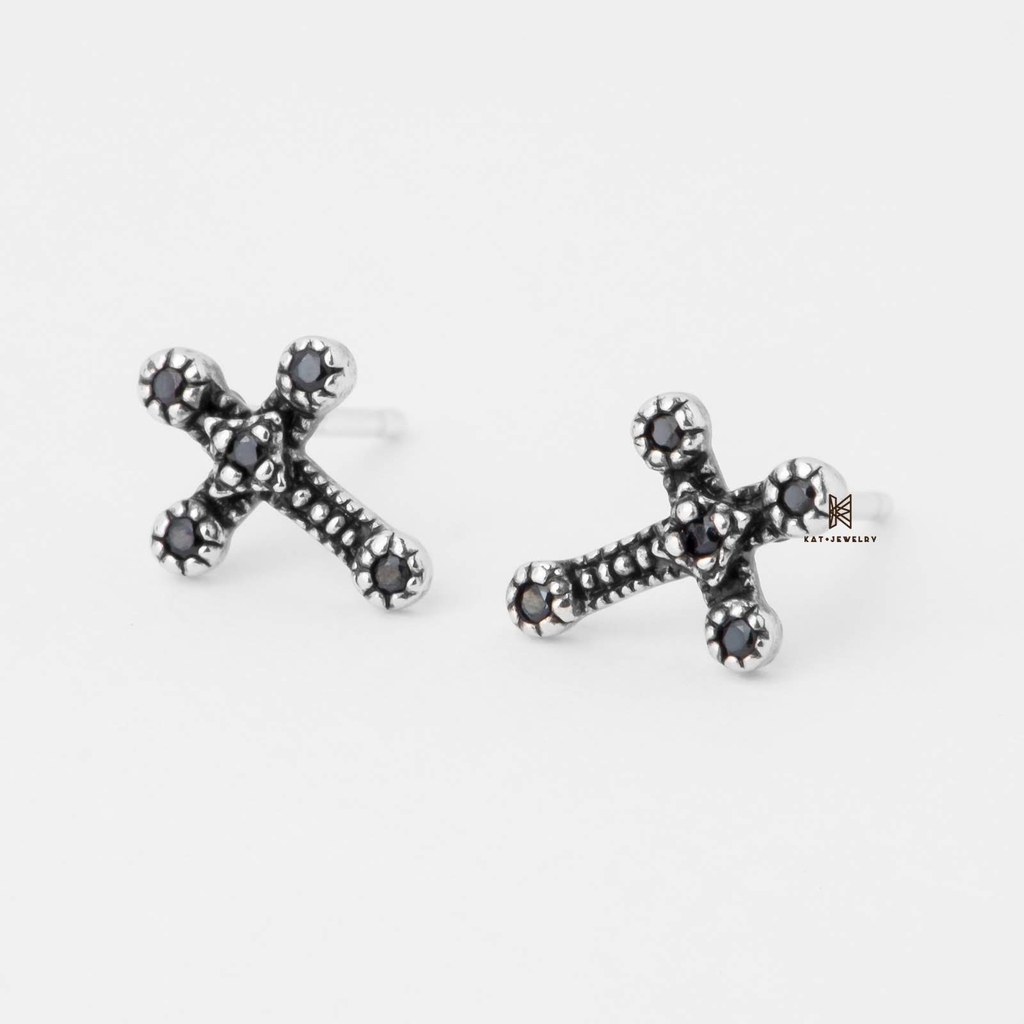 E STUD CROSS BLACK GEM OXIDIZE