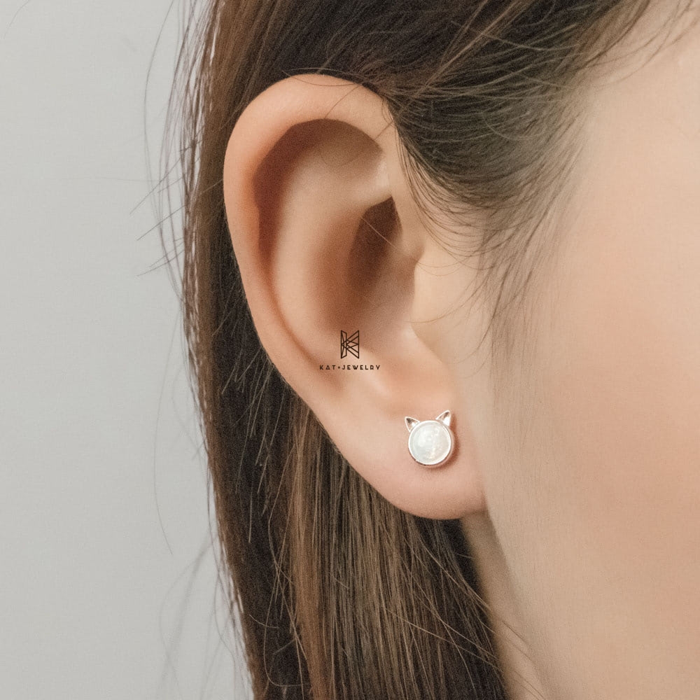 E STUD OPAL CAT RAINBOW STONE